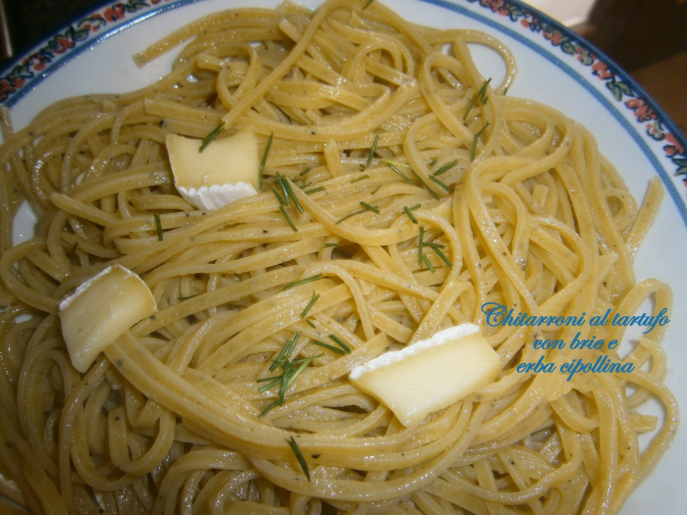- Chitarroni al tartufo con brie e erba cipollina