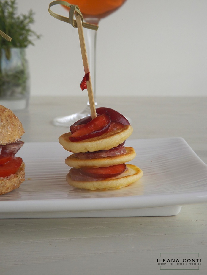 - Mini pancake salati con salsiccia passita e ciliegie di Marostica
