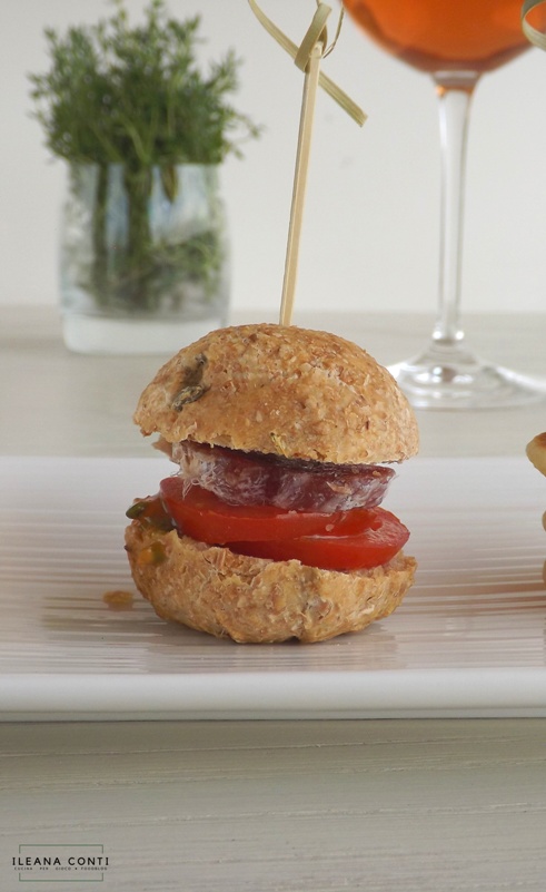 - Minipanino integrale ai semi di finocchio con salame e pomodoro camone