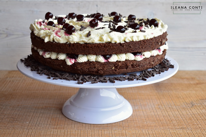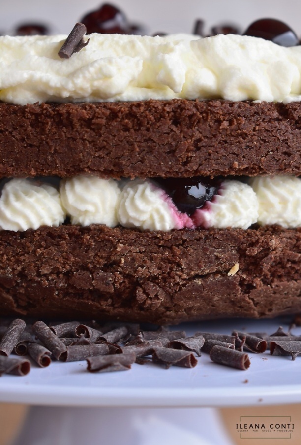 Dicevo che volevo qualcosa tipo la Foresta Nera ma non volevo una torta con farina di mandorle come prevede la ricetta tradizionale allora ho navigato un pochino e ho trovato la ricetta di Marianna Pascarella che assomigliava abbastanza a quello che avevo in mente ed eccoci qua.
